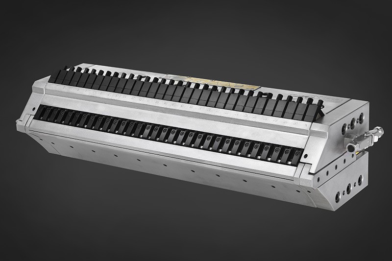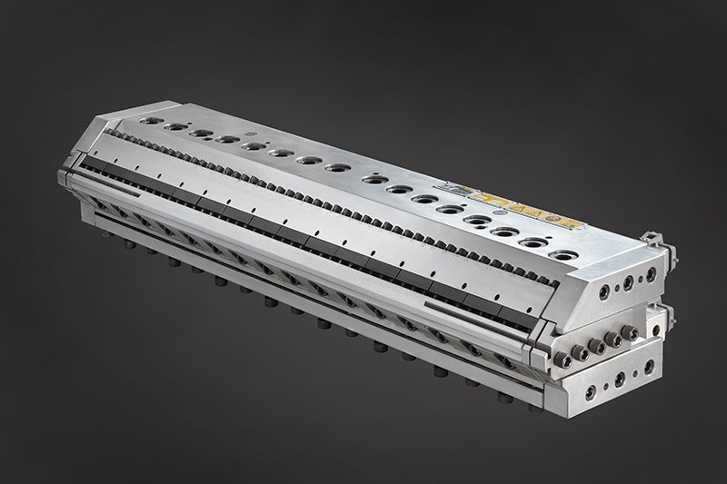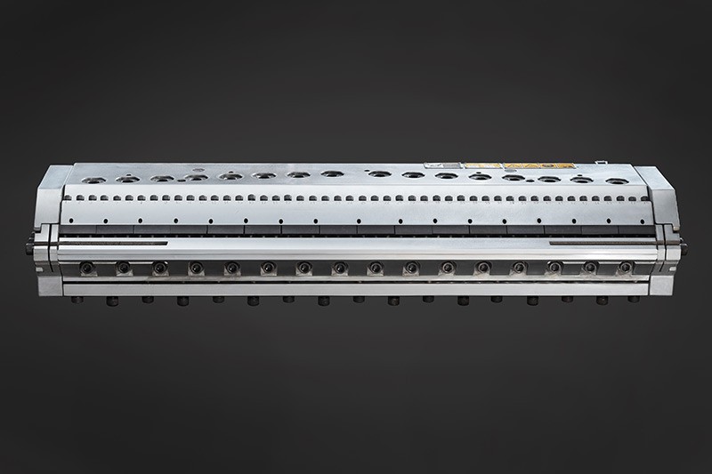 The specially designed upper die lip push-pull fine-tuning structure can effectively control the thickness uniformity of the sheet within ±0.1%. The die head adopts a hanger-style flow channel design.